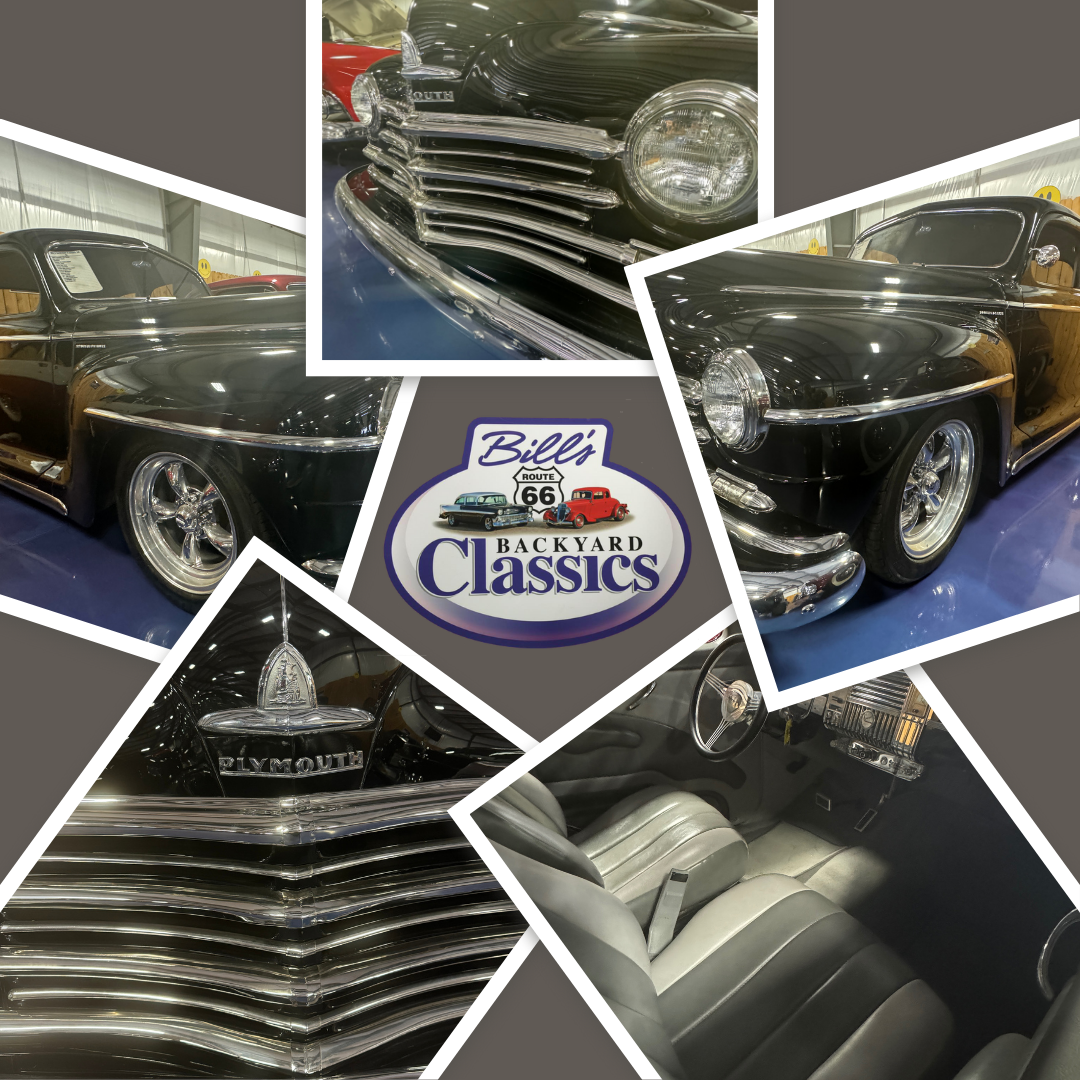 This exquisite 1947 Plymouth Coupe boasts an enhanced 350HP V8 engine, making it a standout in our collection at Bills Backyard Classics. Bill appreciates the intricate design elements of this vehicle, fondly referring to it as his "Woman Car" due to the way the grille embraces the form, the full-length trim incorporates the door handles, and the rear fenders feature built-in skirts. He admired the elegant curves that Plymouth integrated into this classic car.