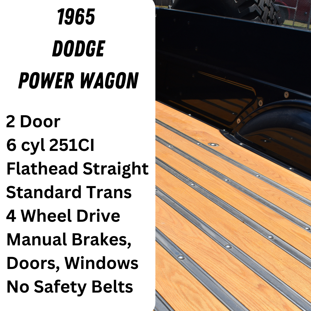 Take a look at this remarkable 1965 Dodge Power Wagon, boasting a robust 6-cylinder 251ci Flathead straight engine and a standard transmission! This captivating 2-door truck effortlessly combines style and functionality. Equipped with 4-wheel drive capabilities, it can conquer any terrain with ease while maintaining an air of elegance.
