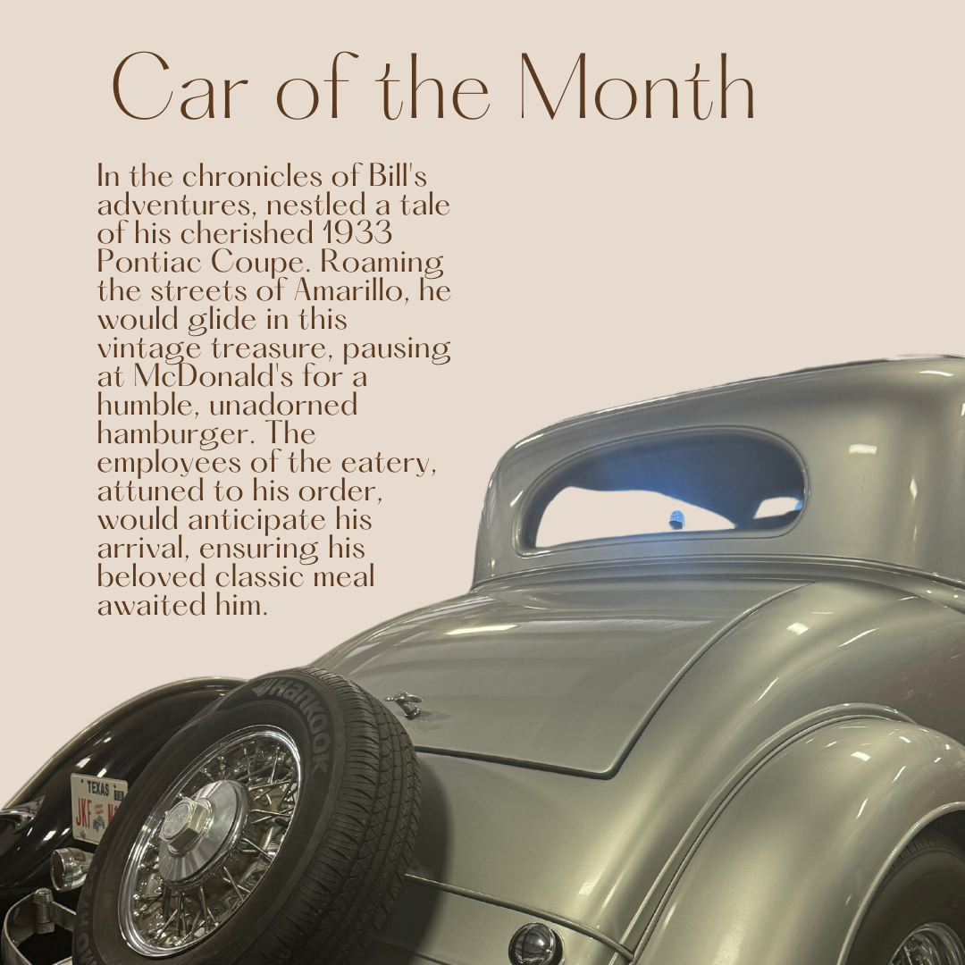 At Bill's Backyard Classics, you'll find over 100 meticulously chosen classic automobiles, each telling its own captivating story. Among our collection, the 1933 Pontiac is often the first vehicle you encounter upon entering the museum. While we certainly admire the impressive 360HP Pontiac V8 engine and 700 R4 automatic transmission, it is not solely these features that elevate this car to a prominent position in our museum. Instead of focusing on how exhilaratingly fast this classic coupe is (and trust me, it’s incredibly fast), let me share a heartfelt story!
