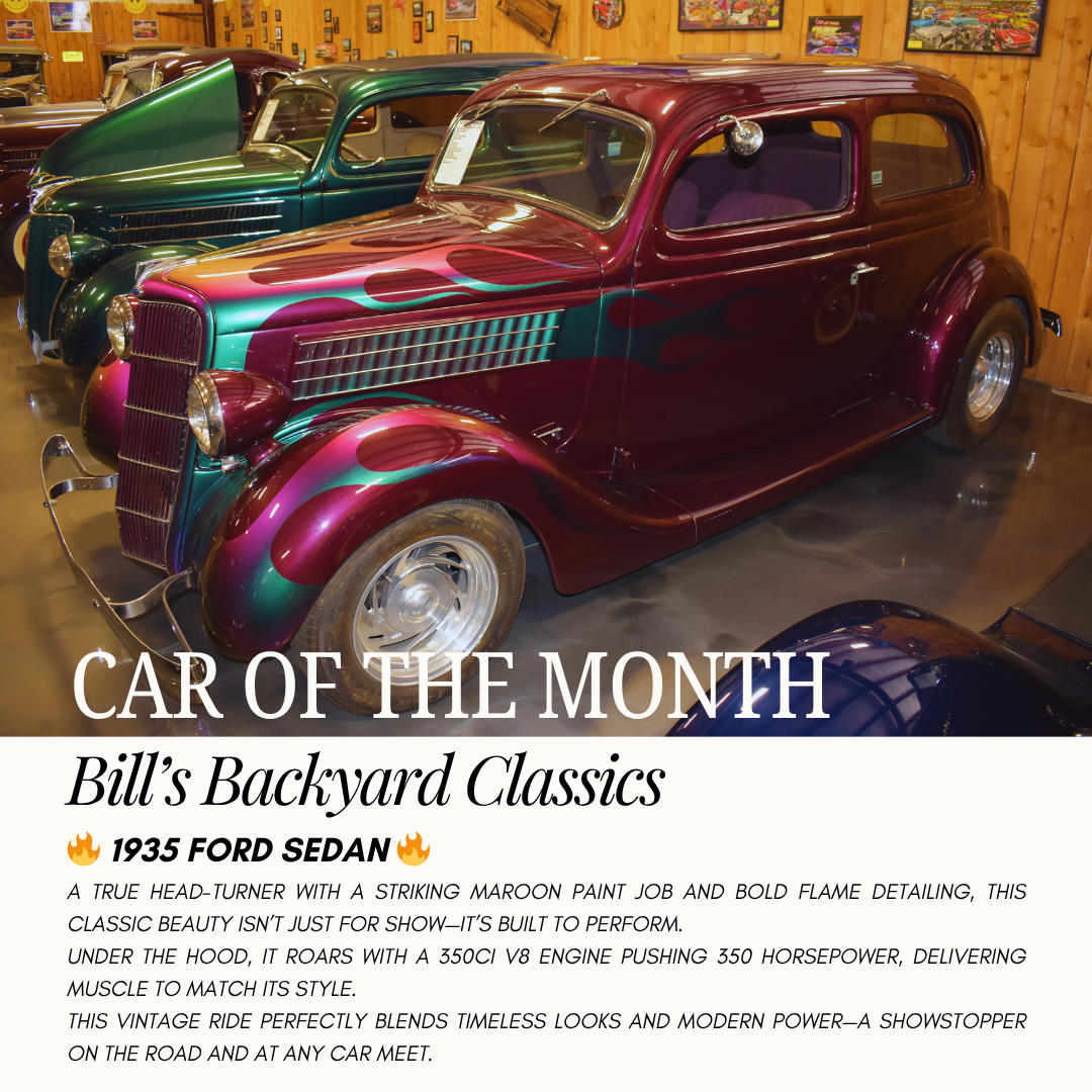 This stunning hot rod is just one highlight from the incredible collection at Bill's Backyard Classics! If you’re a fan of automotive history, vintage craftsmanship, or just love a good-looking ride, our museum is a must-see. With over 100 unique classic cars on display, there’s something for every car lover—whether you’re into elegant cruisers, bold muscle cars, or rare gems from the past.